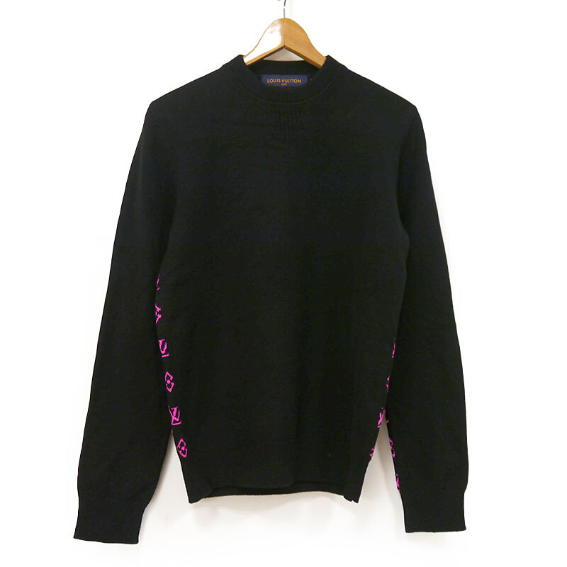- ルイヴィトン Louis Vuitton カシミヤニット サイズS ブラック×ピンク 背面モノグラム柄