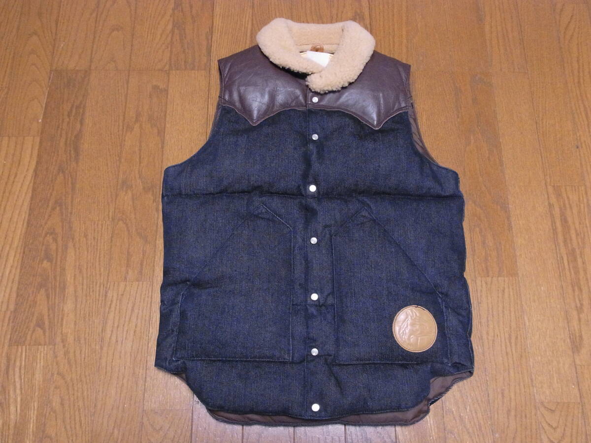 - 254-9/濃紺/日本製/Rocky Mountain Featherbed/ロッキーマウンテンフェザーベッド/襟ボア/レザーヨーク/デニムダウンベスト/36