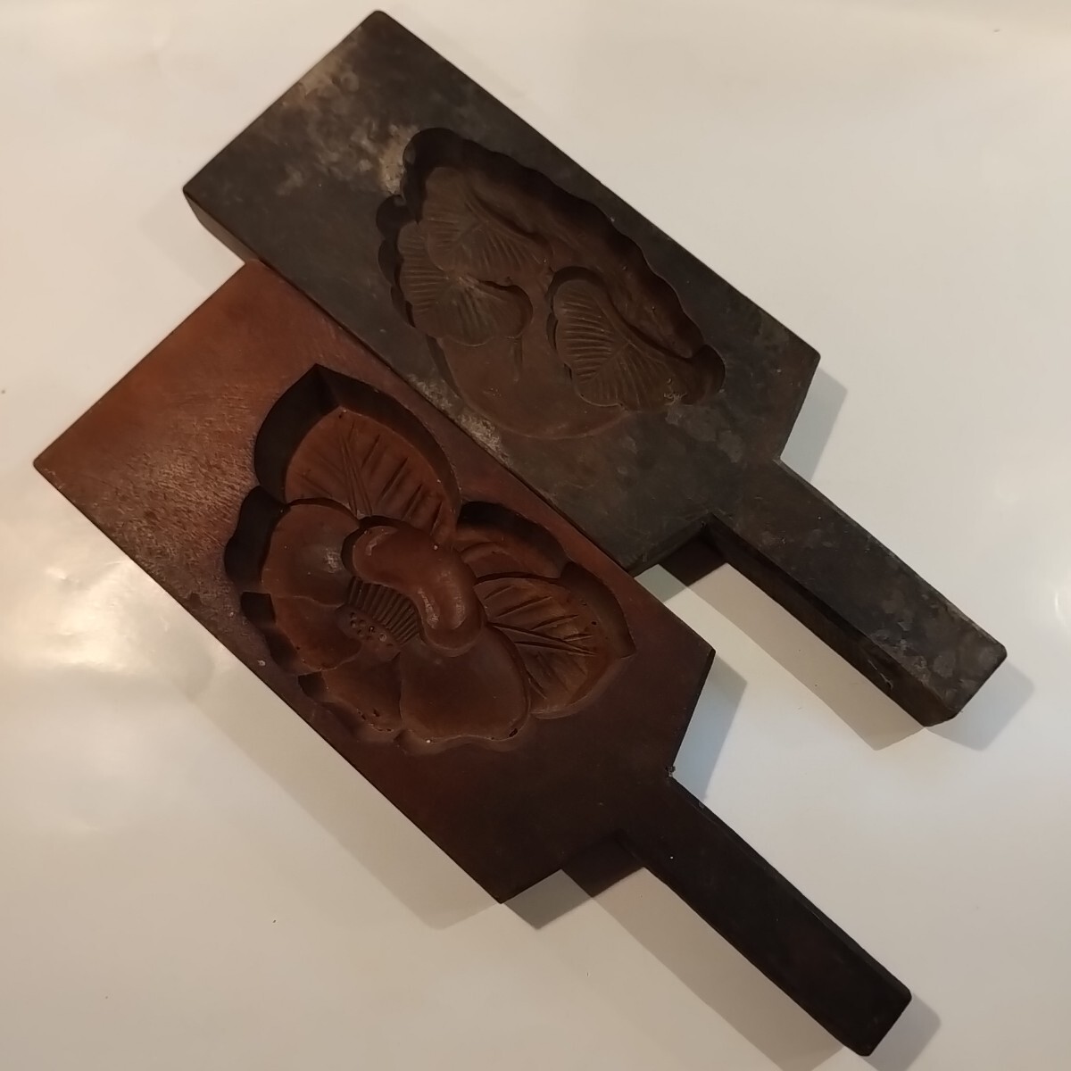 - 木製菓子型 木彫 当時物 古道具 和菓子 レトロ a22