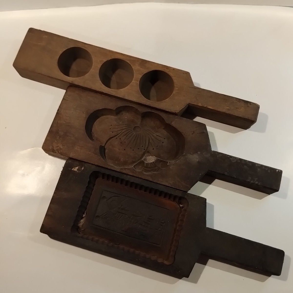 - 木製菓子型 木彫 当時物 古道具 和菓子 レトロ a26