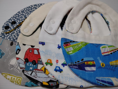 - ☆車と電車 前ボタン10重ガーゼふんわりハンドメイドスタイ 4枚セット 66