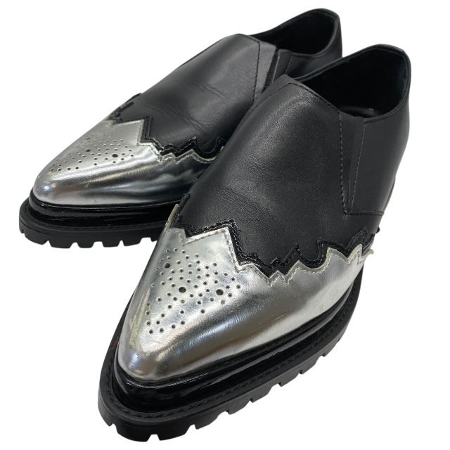 > sacai サカイ スリッポン ドレスシューズ シューズ ポインテッドトゥ メタリック レザー ブラック シルバー [サイズ 36 (約23cm)]