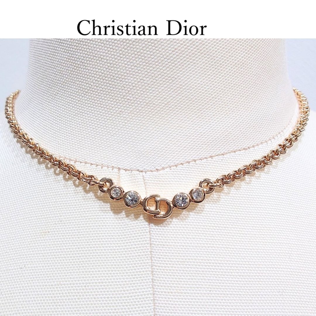 - 【鑑定済】ヴィンテージ Christian Dior CD クリスチャン ディオール CDロゴ ラインストーン ネックレス ゴールド【送料無料】