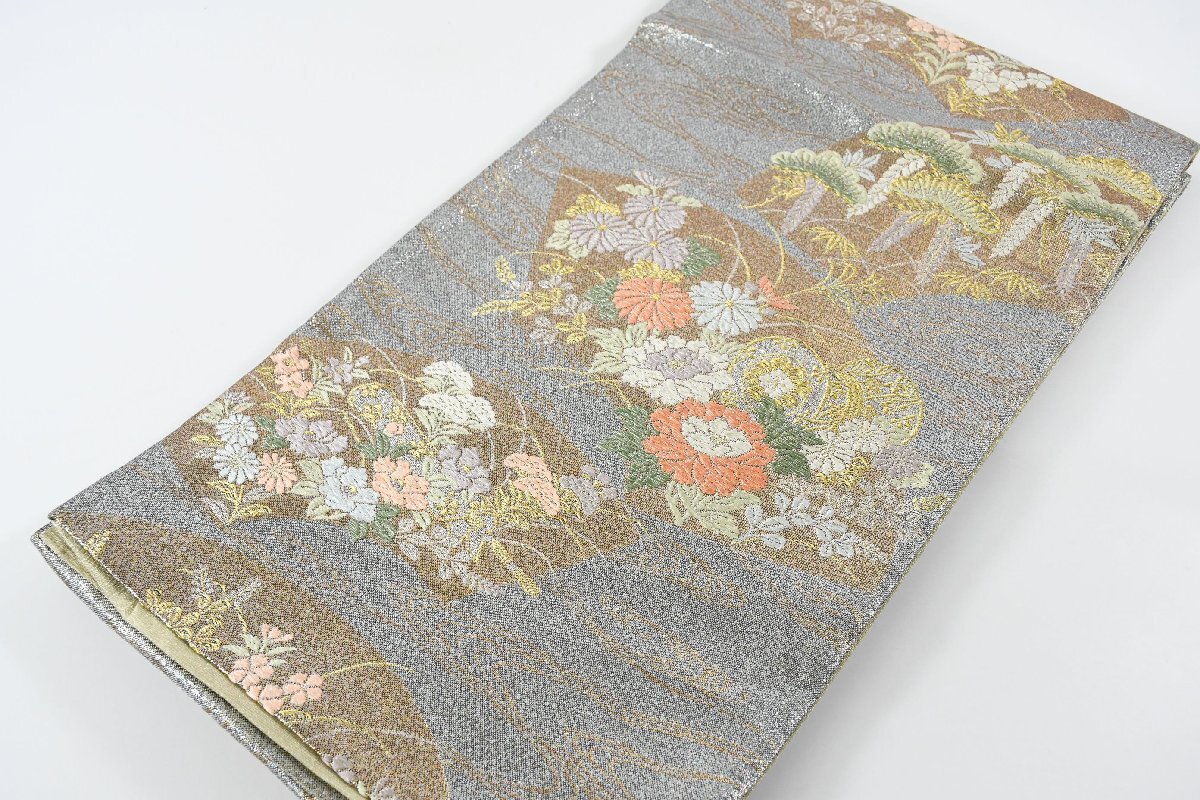 > 袋帯 琳派絵図 扇面鼓文 西陣 未仕立て 六通柄 花 帯丈436cm ★着物屋 ne-14801 桜庭呉服店