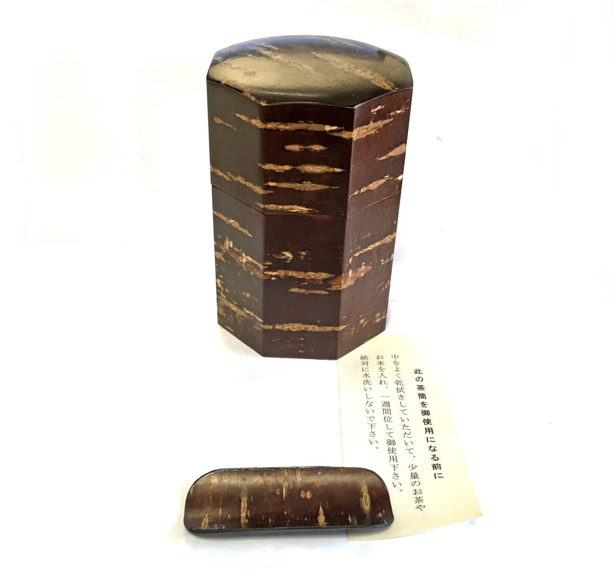 - 桜竹工芸 秋田 八角形 茶筒 茶さじ 未使用 箱なし