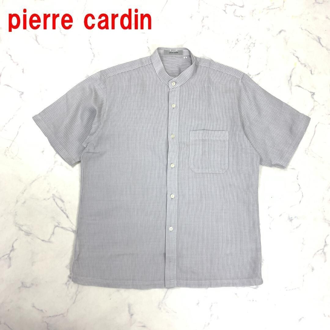 - A5616 ピエールカルダン 半袖シャツ 綿 リネン pierre cardin コットン ホワイト グレーノーカラー 白 L