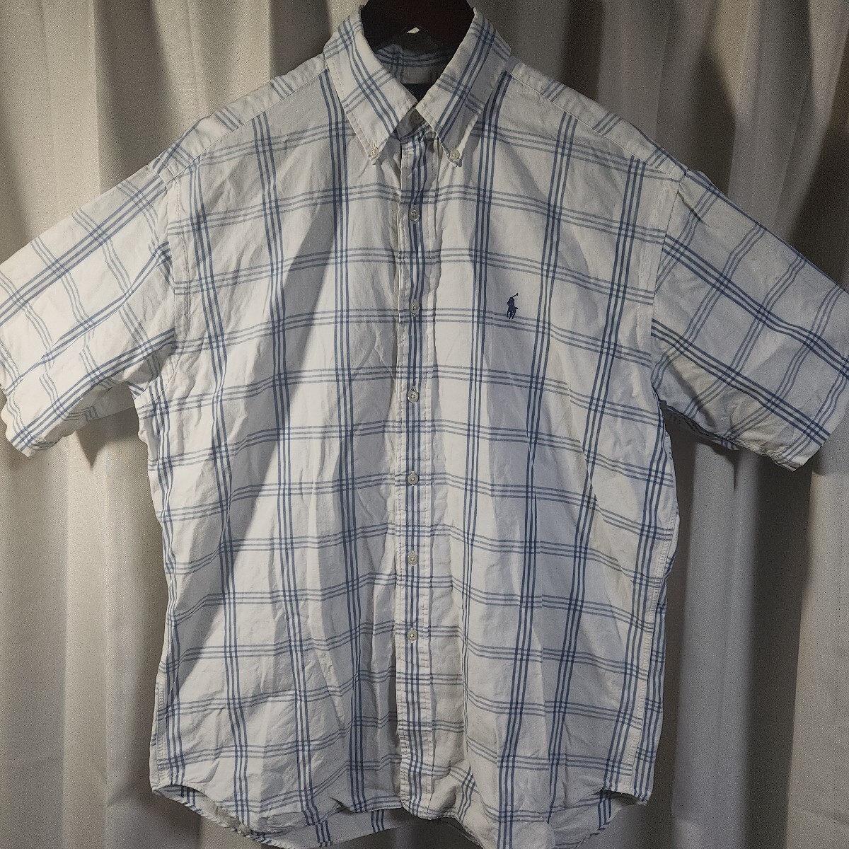 > Ralph Lauren ラルフローレン 半袖 シャツ チェック ボタンダウン サイズM 白×ブルー