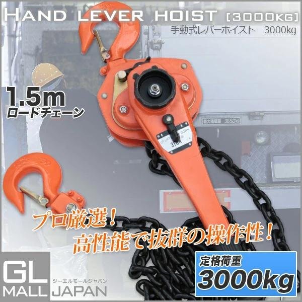 > レバーホイスト 最大能力3t(3000kg) チェーンホイスト 小型 軽量 吊上げ 玉掛け 牽引 軽量 農機 機械移動 伐採