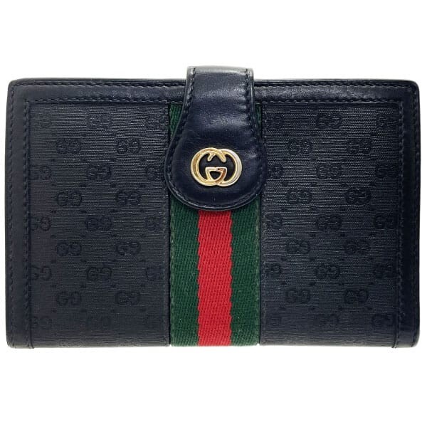 > 14698 グッチ 財布 ヴィンテージ シェリー がま口財布 PVC レザー 革 ブラック 黒 035 904 GUCCI