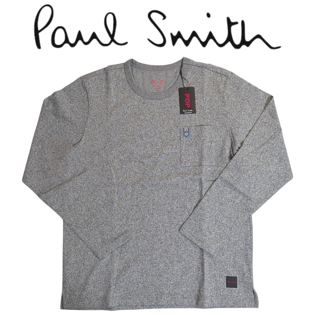> 新品 Paul Smith POP ポールスミスPOP 長袖Tシャツ カットソー L ラウンジウエア ロンT グレー杢 ウサギ 刺繍 胸ポケット メンズ 春 秋