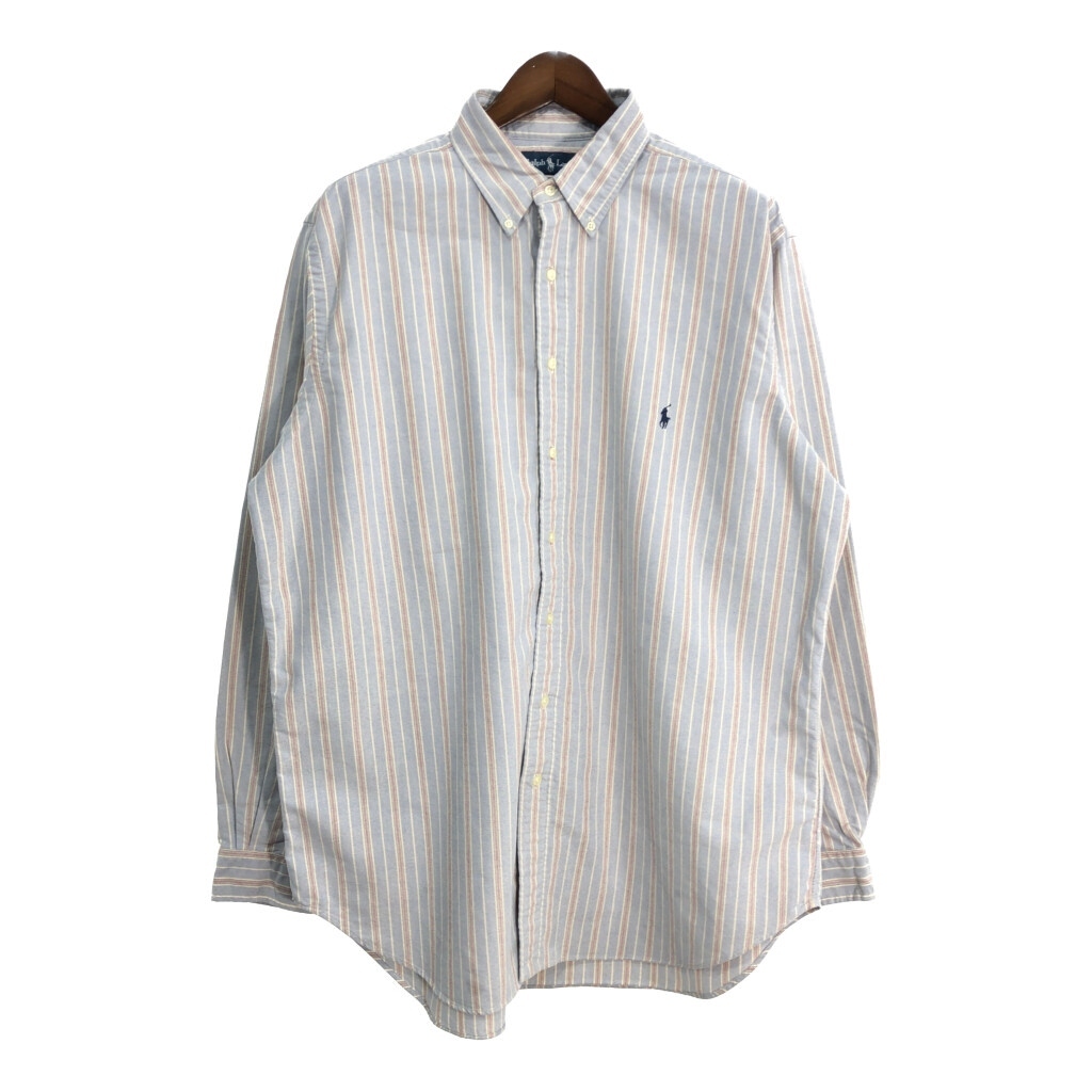 > RALPH LAUREN ラルフローレン 長袖ボタンダウンシャツ ストライプ ライトブルー(メンズ XL)中古 古着 T8012