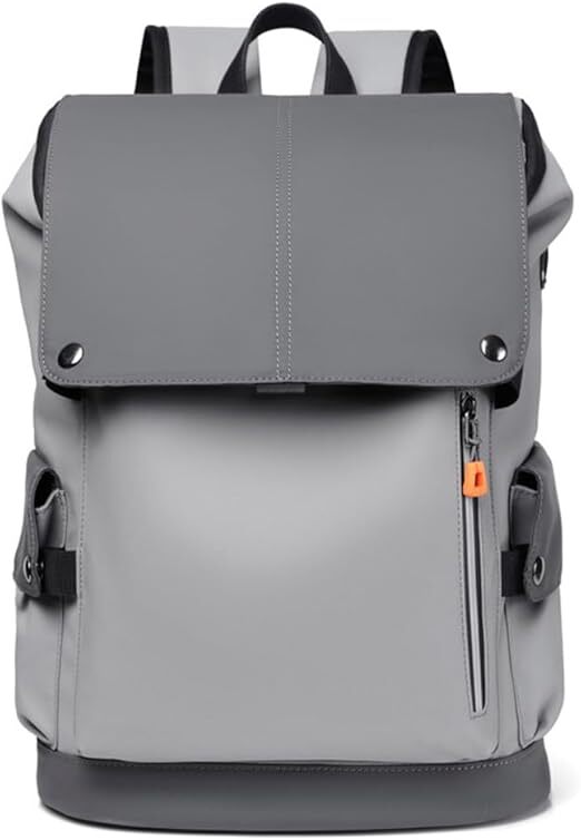 - ライトグレー 大容量PU革リュック メンズ レディース兼用 バックパック 15.6インチPC対応 防水 おしゃれ USB充電ポート付き 通学 通勤