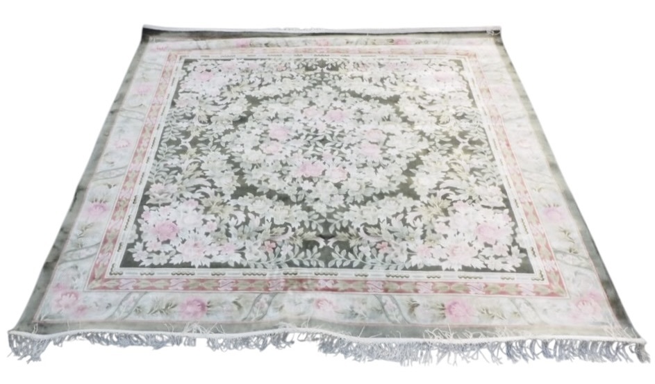 - ビンテージ 中国高級段通 ウール 花柄カービングラグ グリーン系 1980年代 TMA704