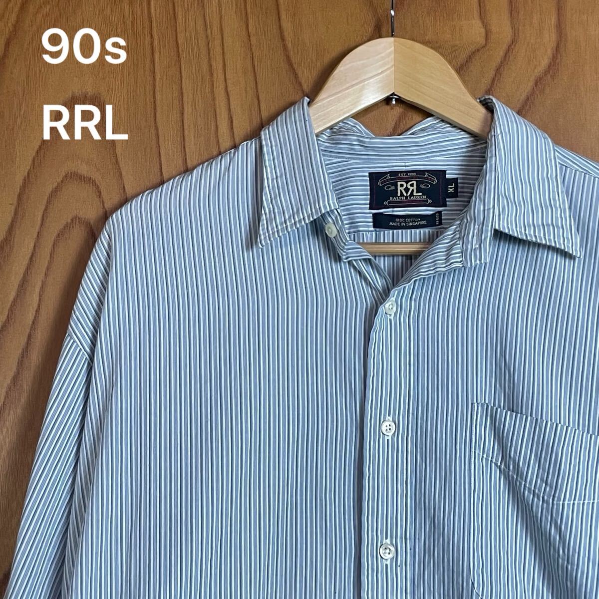 > 超希少 90s 三ツ星タグ RRL ストライプ 長袖シャツ ダブルアールエル USA企画 double rl 90年代 オールド OLD ビンテージ ラルフローレン