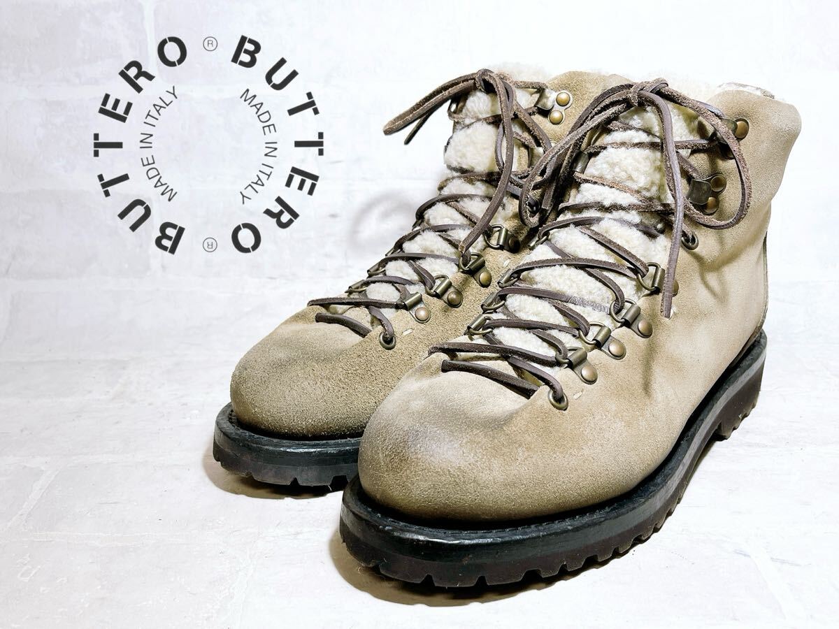 > イタリア製【美品】BUTTERO ブッテロ 高級 ムートン トレッキングブーツ ベージュ レザー スエード 40(約25cm)メンズ 紳士靴