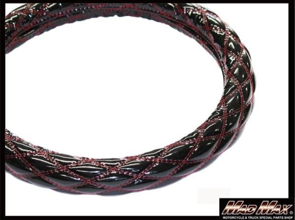 - トラック用品 極太 ダブルステッチ NEWブレイクキルト エナメルキルト ハンドルカバー ブラック/レッド 2HS(45-46cm)【送料800円】