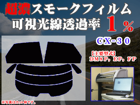 - マツダ CX-30 DM系 ストロングスモーク 透過率1% 超濃黒ウィンドウフィルム カット済みカーフィルム