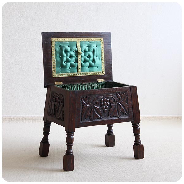 - イギリス アンティーク ソーイングボックス 裁縫箱 オーク インテリア 家具 彫刻装飾 店舗什器 K-372