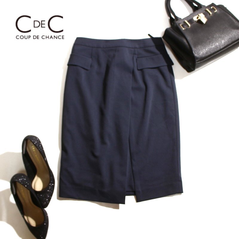 > 美品 クードシャンス COUP DE CHANCE 株) ワールド 春 夏 ジャージ― ス 膝下丈 タイトスカート 9号 38 M グレー オフィス 通勤 フォーマル