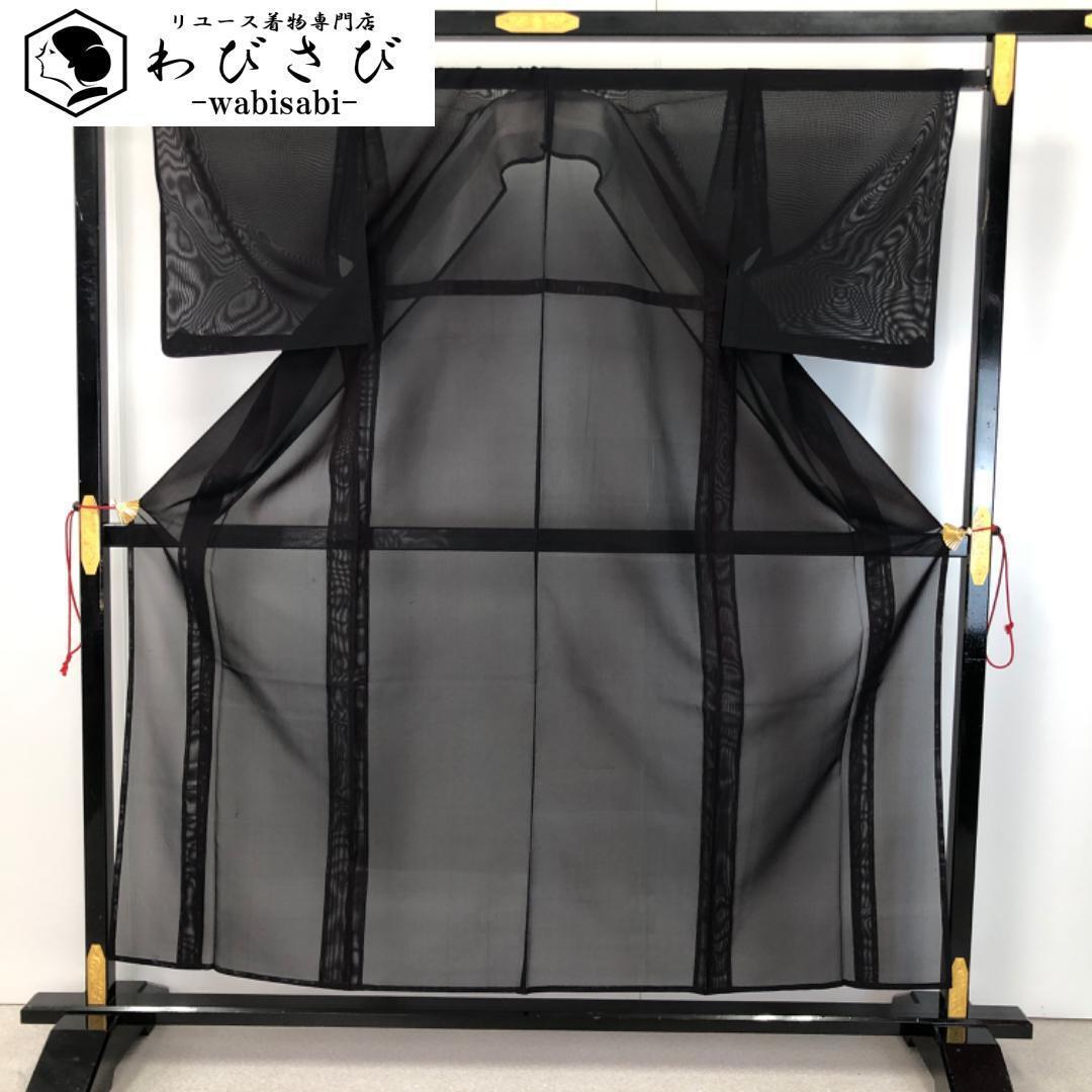 > 夏着物 二重紗 色無地 黒色 K-4586 着物 きもの kimono 和服 和装 中古 リサイクル着物 【送料無料】