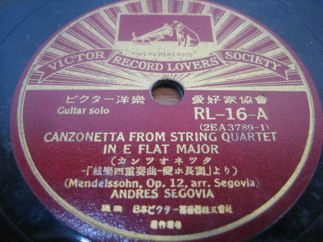 - ◆メンデルスゾーン/弦楽四重奏曲第1番 変ホ長調 作品12/他◆Andres Segovia/アンドレス・セゴビア RL-16 SP盤◆菅RA1-2