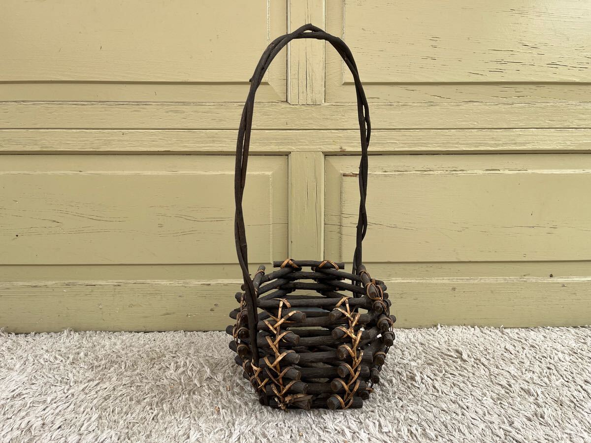 - m☆【木製花瓶スタンド 持ち手付き】竹籠/花器/花籠/骨董/華道具/茶道具/手付/自然素材/つる編み/レトロ◎