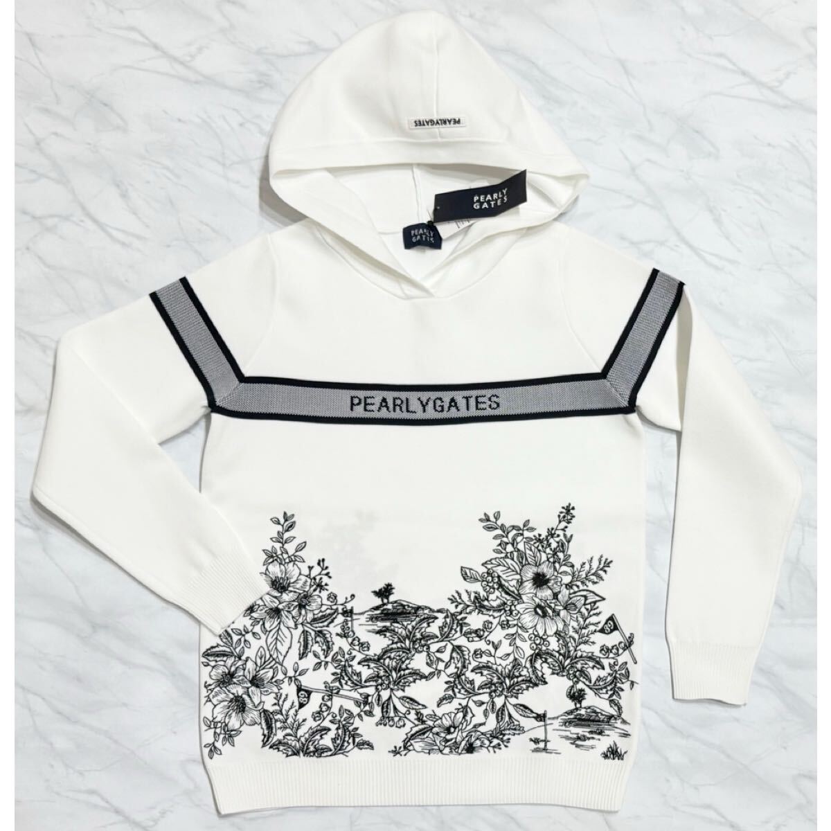 - 新品パーリーゲイツ パネル刺繍パーカーフード付きプルオーバーニット#0白,