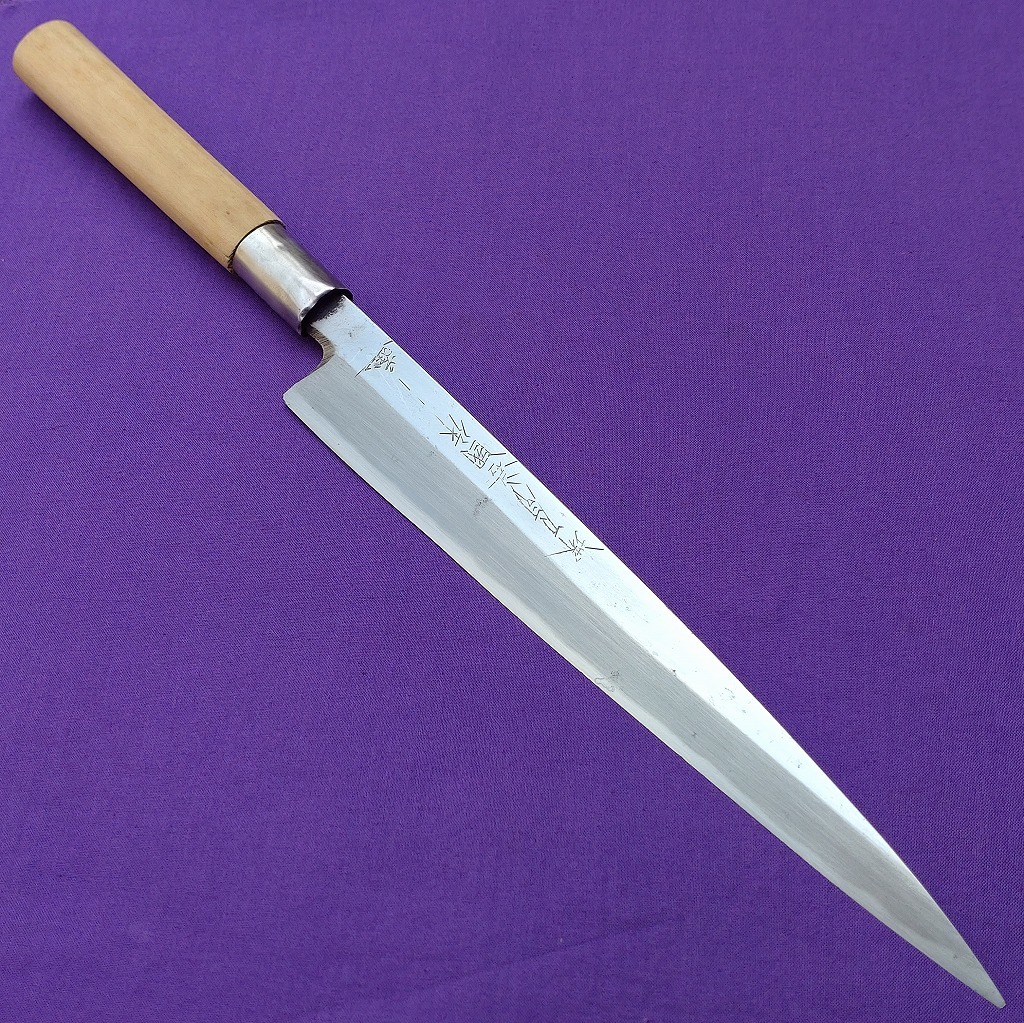 - 柳刃包丁 刺身包丁 正夫 和包丁 堺刀司 岩國作 刃長約220㎜ 峰厚最大約4㎜ 片刃 庖丁 刃物 Japanese sashimi knife Fish slicer【5960】b