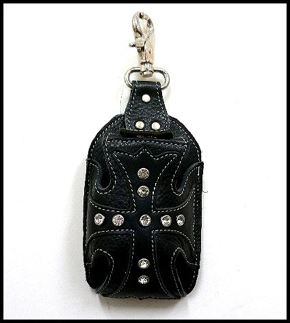 > 牛革アイアンクロス ラインストーン付レザー携帯ケース/ガラケー向き