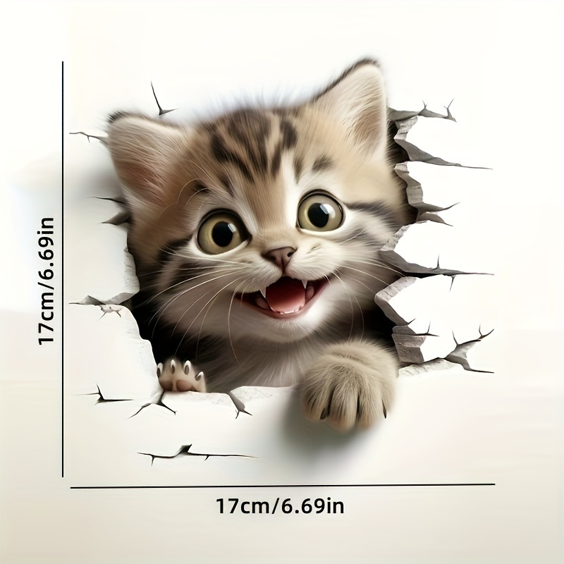 - 車用デカール 壁から飛び出す 猫 17cm かわいい おもしろ ひび割れ 笑顔 ねこ 立体 3D 窓用ステッカー ビニール素材 防水 ネコ 子猫 t3153