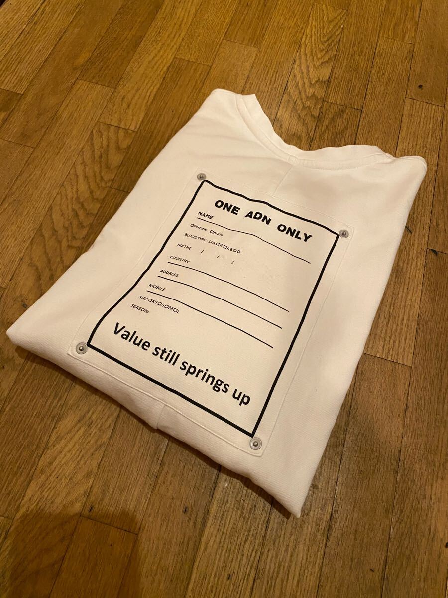 - バックプリントカットソースウェットトレーナービッグルーズシルエットオーバーサイズ白プリントロゴタグ丸首ロング丈ボックス