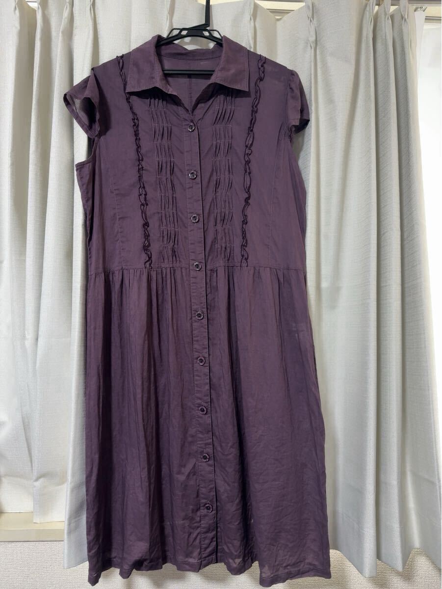 - ワンピース☆チュニック☆ 半袖☆パープル☆紫系☆ひざ丈☆レディース☆L☆薄地☆軽量☆