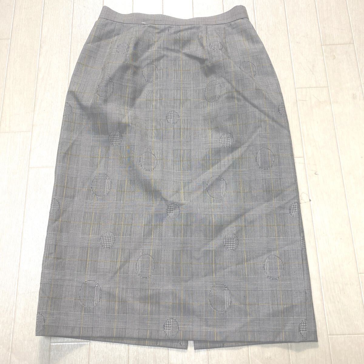- O20☆ GIVENCHY ジバンー ボトムス スカート 膝下スカート レディース 38 グレー ウインドペーン ドット柄