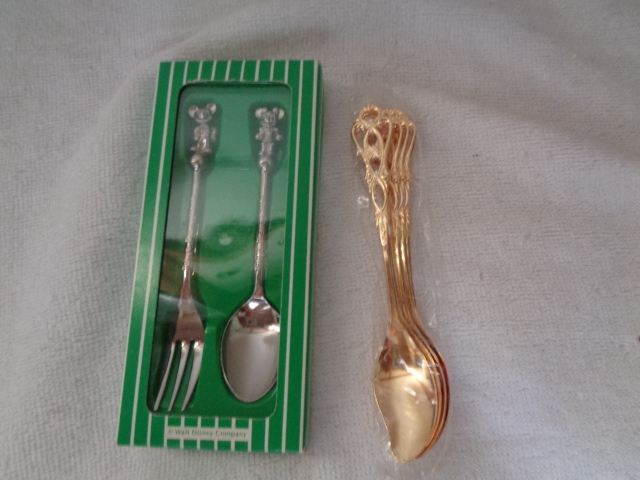 - 東京ディズニーランド ミッキー&ミニー フォーク&スプーン及び金メッキステンレススプーン5本セット/計7本/未使用美品-長期保管品