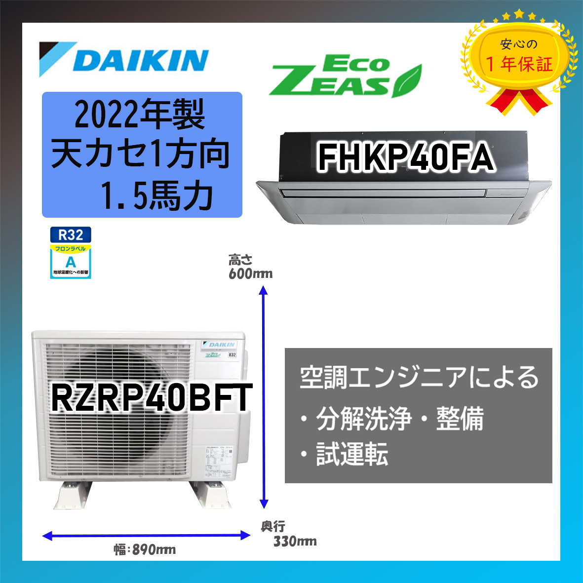 - 保証付!ダイキン☆2022年製天カセ1方向☆1.5馬力☆D415
