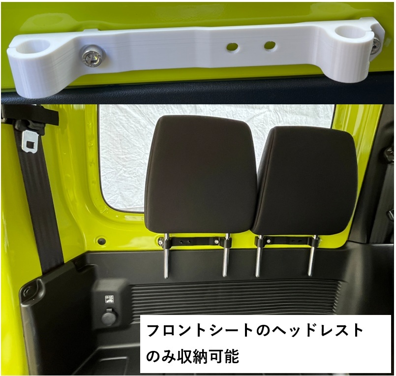 > スズキ ジムニー、シエラ(JB64W、JB74W)運転席、助手席用のジムニーヘッドレストホルダー(車中泊アイテム) 色:白