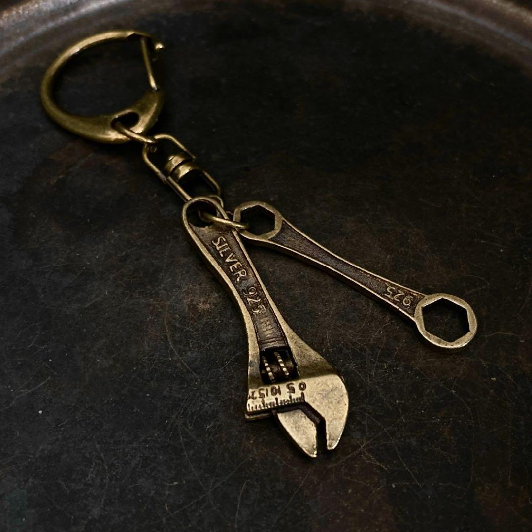 > 118 真鍮 キーホルダー レンチ 工具 ビンテージ 風水 金運 開運 レトロ アンティーク 真鍮製 チャーム アクセサリー パーツ ハンドメイド