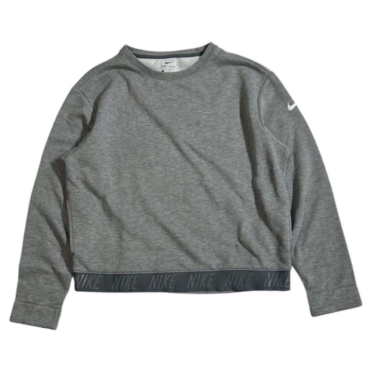 - ■ NIKE ナイキ ■ スウッシュ ロゴ プリント DRI-FIT レーヨン混 スウェット トレーナー グレー L