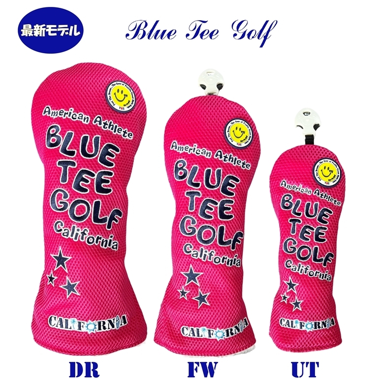 - ■【3PA:ピンク】ブルーティーゴルフ【メッシュ スマイル】3本セット販売(A)ヘッドカバー BLUE TEE GOLF DHC-007 送料無料