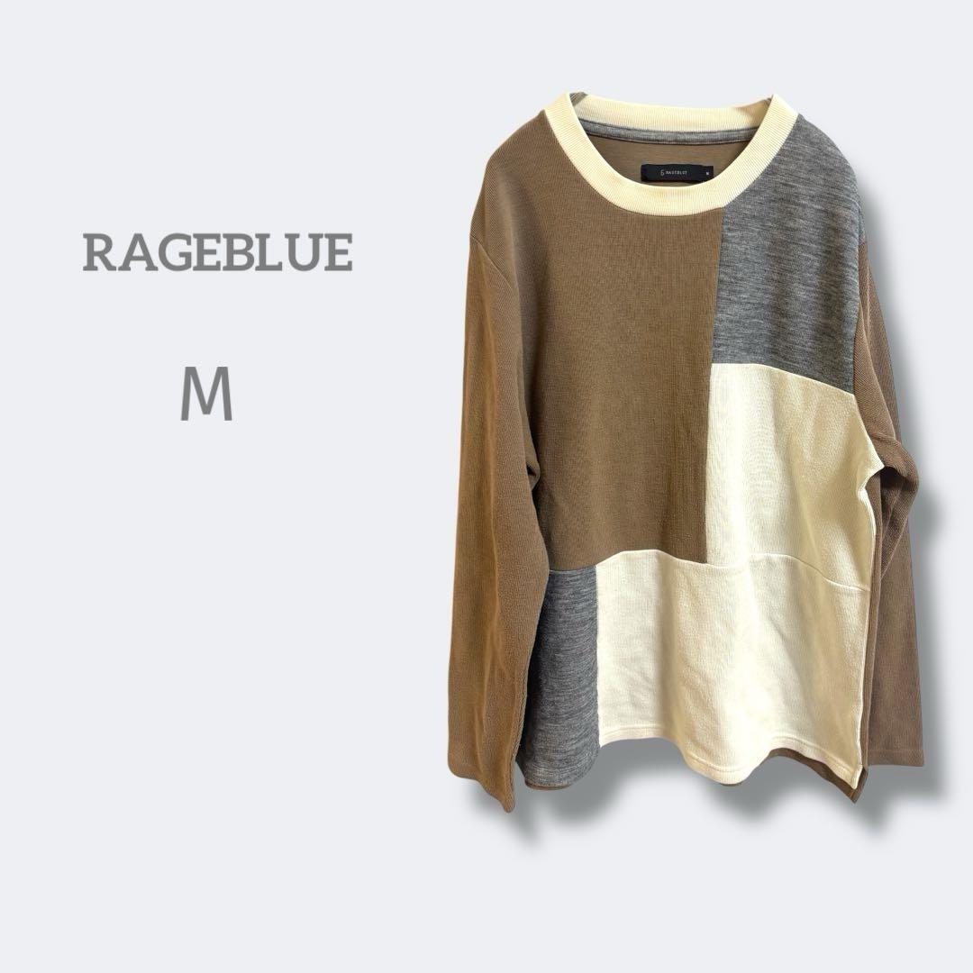 - 3300レイジブルー【M】パッチワークデザインカットソー レーヨン