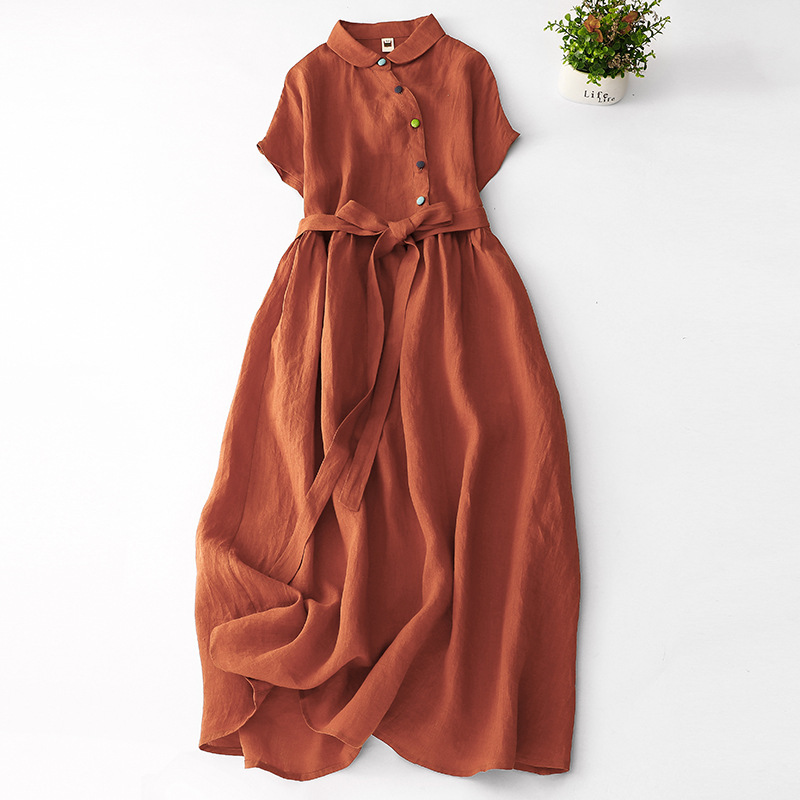 > 大人気新品M-2XLサイズナチュラル ゆったり ポケット付き シャツワンピース 夏 半袖 マキシ丈 きれいめミモレ丈ワンピースロングワンピース