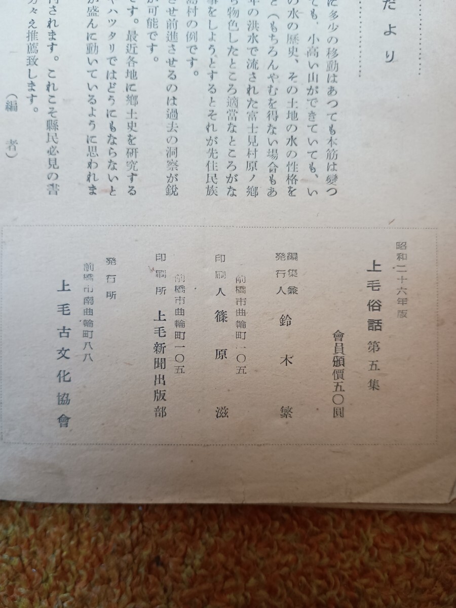 - 送料無料 即買『上毛俗話 第五集』上毛古文化協会 古書 昭和26年