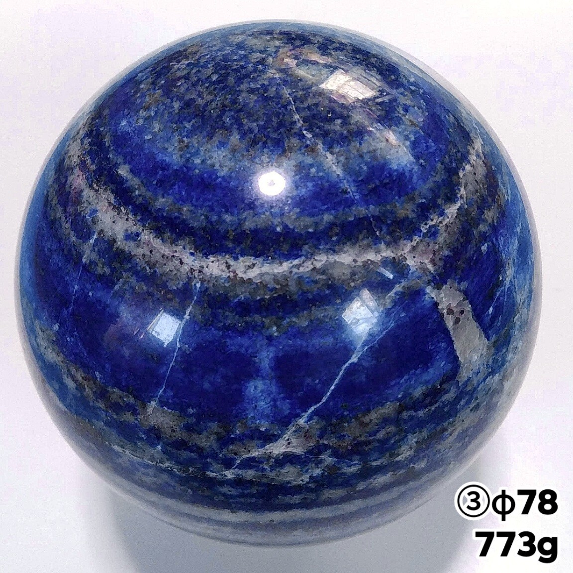 - ③773g78mm 丸玉 スフィア 原石 高品質 ラピスラズリ パイライト 大玉 アフガニスタン