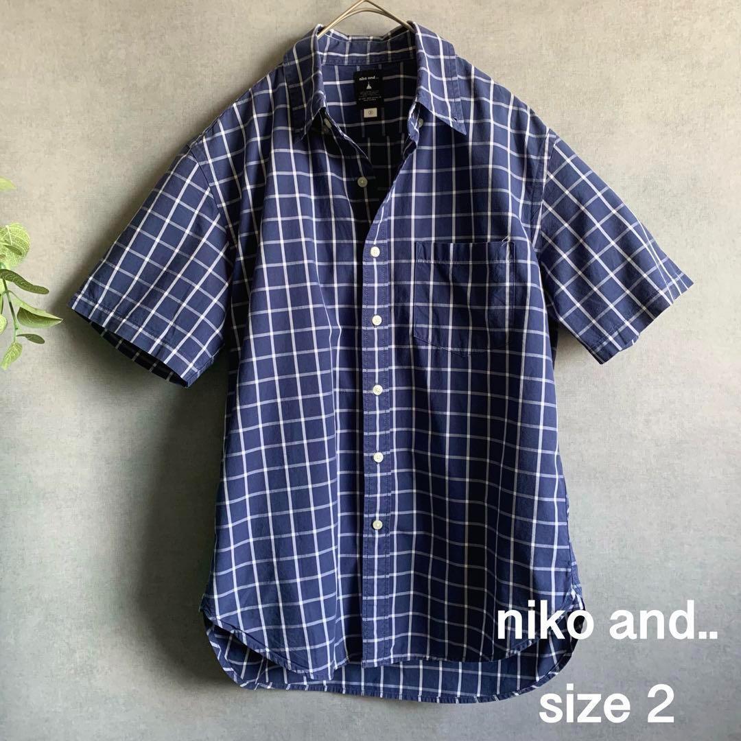 - メンズ niko and.. ネイビーチェック半袖シャツ