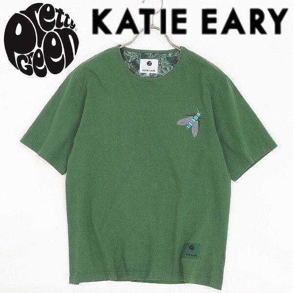 > ◆Pretty Green プリティーグリーン × ケイティ アーリー ワンポイント刺繍 コットン 半袖 Tシャツ グリーン 4