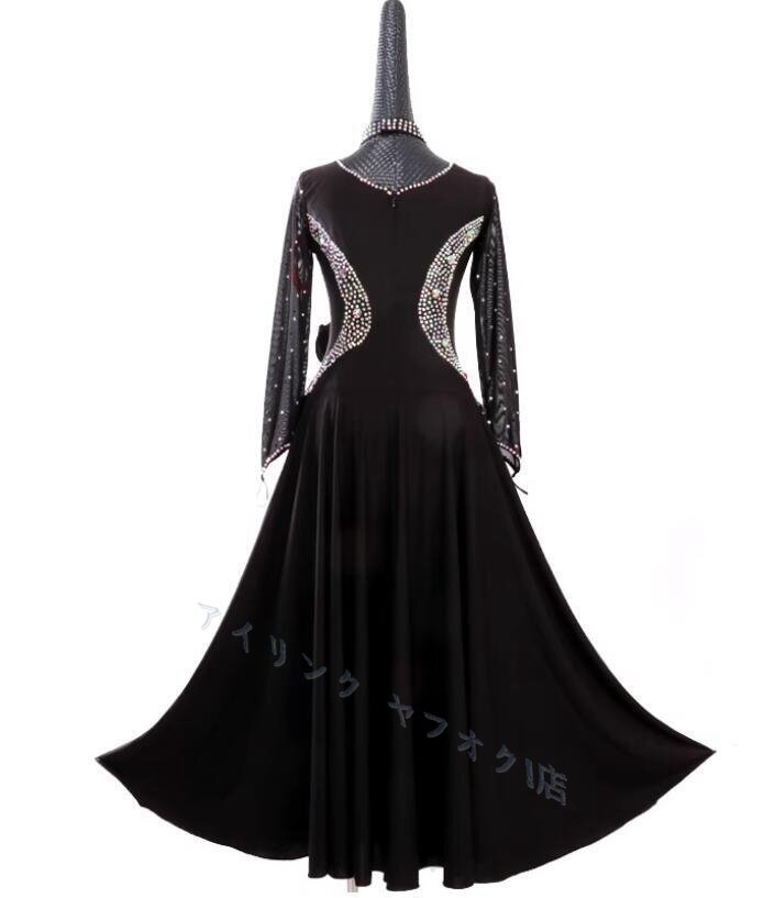 - サイズオーダー品 高級品 レディース社交ダンス ロングドレスワンピース 発表会エレガントモダンドレス ブラック