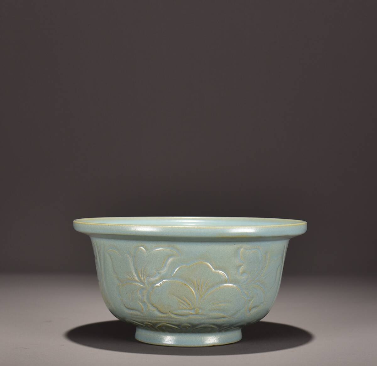 - 宋時代 古陶磁器 汝窯 天青釉刻花碗 和食器 文案置物 賞物 極細工 古賞物 古美味 東洋彫刻 中国唐物 時代物 骨董 中国古美術