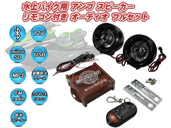 - 水上バイク用 防水スピーカー オーディオフルセット Bluetooth接続 USBメモリ microSDカード 対応 mp3プレーヤー 防水ワイヤレスリモコン付