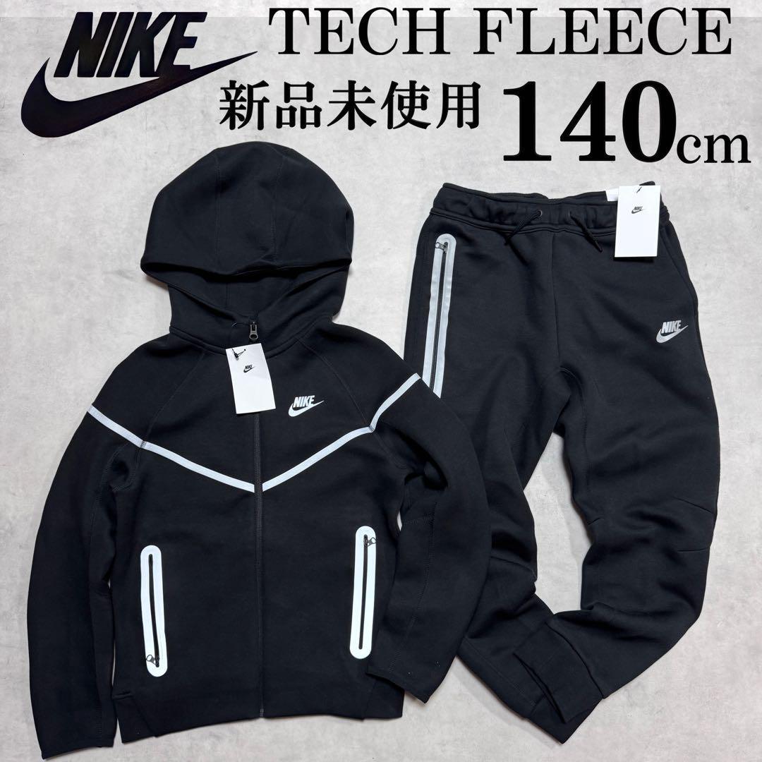 - 新品 140cm ナイキ テックフリース 上下セットアップ パーカー パンツ NIKE TECK FLEECE キッズ 人気 反射 黒 ブラック オールシーズン