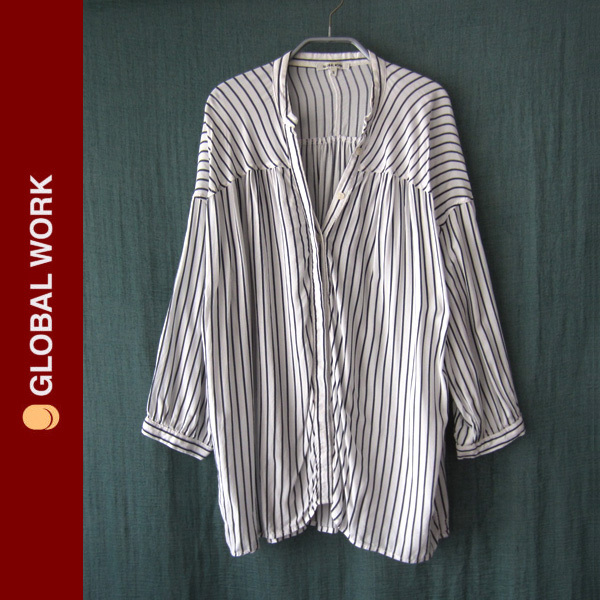- 美品 GLOBAL WORK/グローバルワーク★ ストライプ スキッパー 薄手 長袖シャツ S